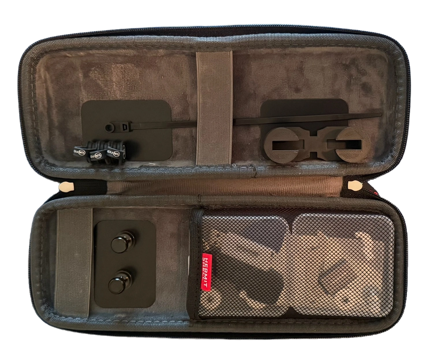 Contents: Case, Magnetic Clasps, Magnetic Push Pins, Mirror, Plastic Boxes, Metal Plates, Self Adhesive Magnet, Zip Tie, USB-C Adaptor, Microphone, Cable Reel, Hammer Tip, Accel Clip and Dongle.